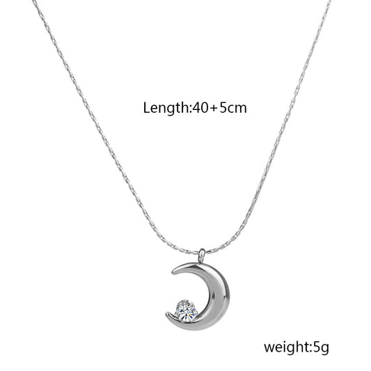 Moon 304 Stainless Steel Zircon Gold Plated Inlay Pendant Necklace
