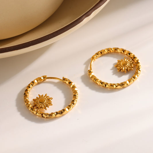 304 Stainless Steel Gold Plated Vacuum Electroplating (In Furnace) Gold Women's Suitable Sun Geometric Earrings